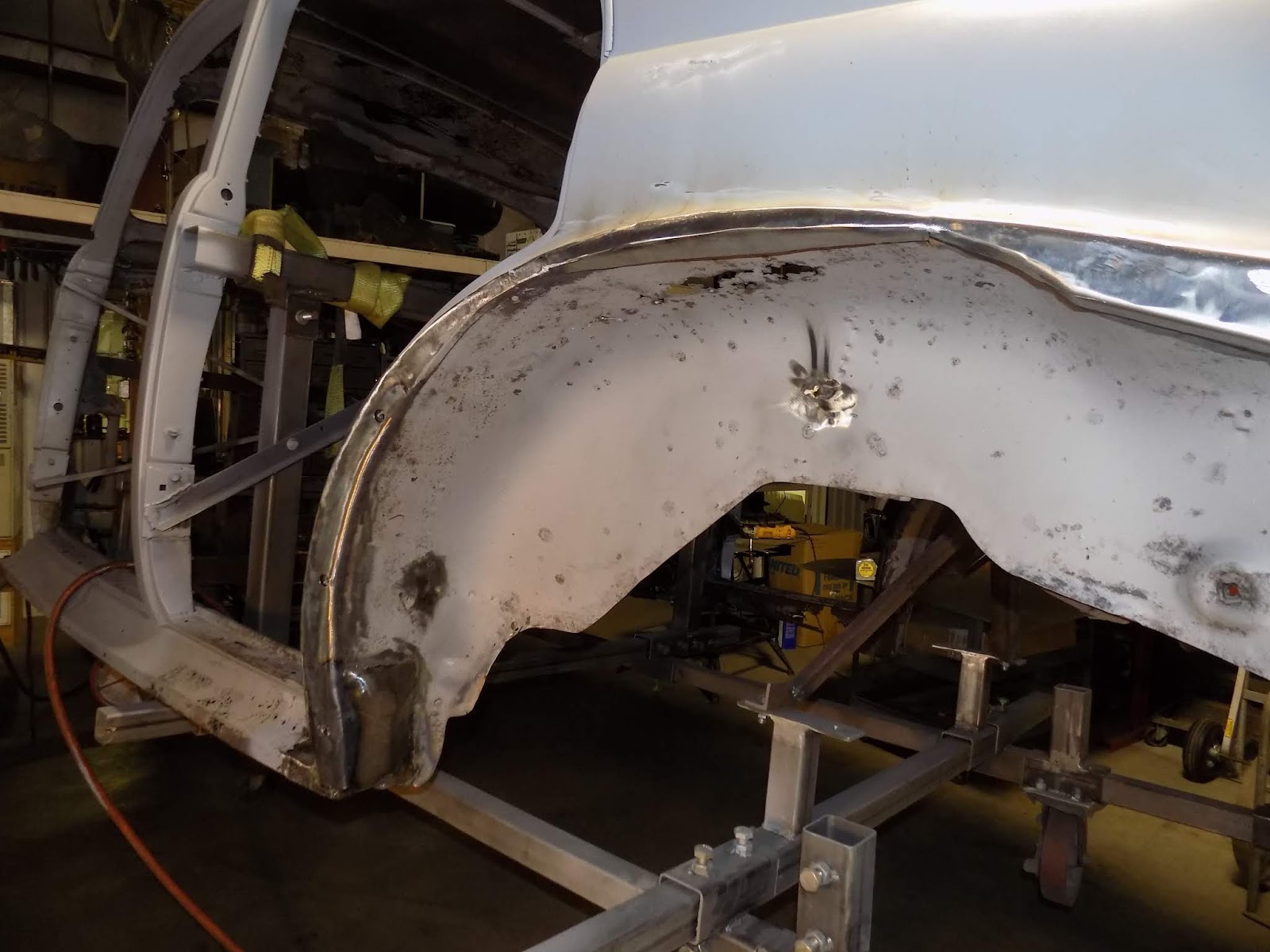 The ground pan of the trunk (backside) had rusted away from the again of the wheel properly and was hanging unfastened, strips of recent metallic have been reduce and welded into place after the rust was reduce out.